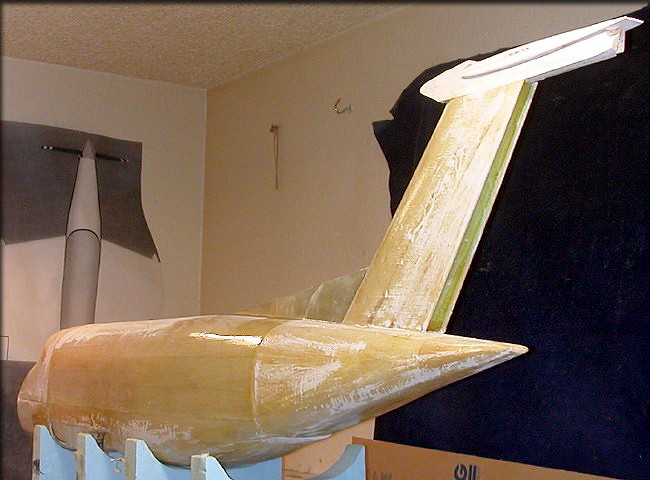 After some filling and sanding, the cowling plug is dimensionally back to the level of the keel and formers, but has a hard surface. Next, I'll glass it for durability, and finalize the shape. This plug will be used to double-check both nacelles, which are coming next... |
