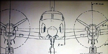 The first item to measure is the distance from the centerline of one nacelle to the other, which you get from the front or top view. I used a balsa building board as the temporary home for this structure, and drew lines at the proper distance, directly on the board denoting where the nacelle centerlines would be.