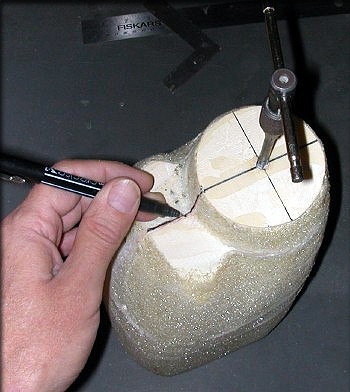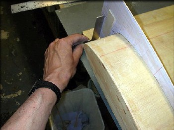 Alignment and SymmetryI'm doing several things on the King Air to insure that those items that there are two of, such as the engine nacelles, are the same. I'll shape the right nacelle first, check it against my drawings for accuracy, and then use those patterns to verify the shape when I make the left nacelle. Both engine cowlings will be made from the same plug/mold, so the symmetry of those parts is guaranteed. (photo at right) |