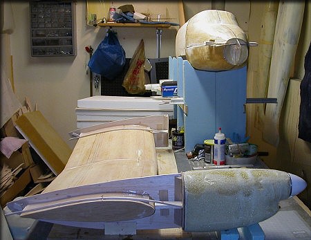 Outer wing panels are about to be glassed, the cowling plug is nearly ready for detailing.