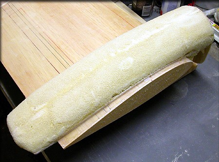To make the cowling plug, I used a method that's worked well for me in the past, using a mix-and-pour urethan foam to create the basic shape. The advantage, aside from speed and ease of use, is that it makes the plugs very durable... more so than a wooden frame with planking. These will be glassed afterward, further improving their durability. I'll wait until the first cowling is actually molded, before making the inlet duct, to insure a perfect fit.