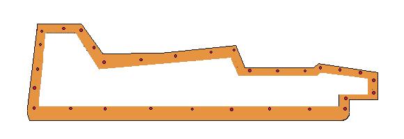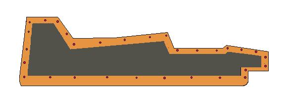Shown in brownish-orange, here's how your parting board might look. Note that the canopy and cowling pieces are not included. They require their own parting boards. The red "dots" you see around the perimeter are explained a bit further on.