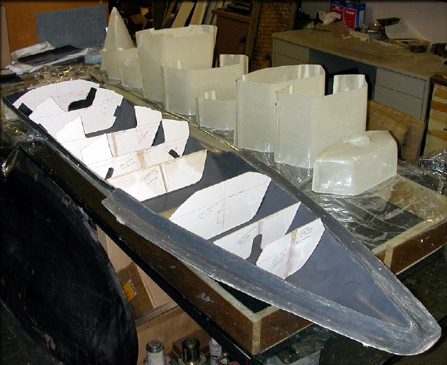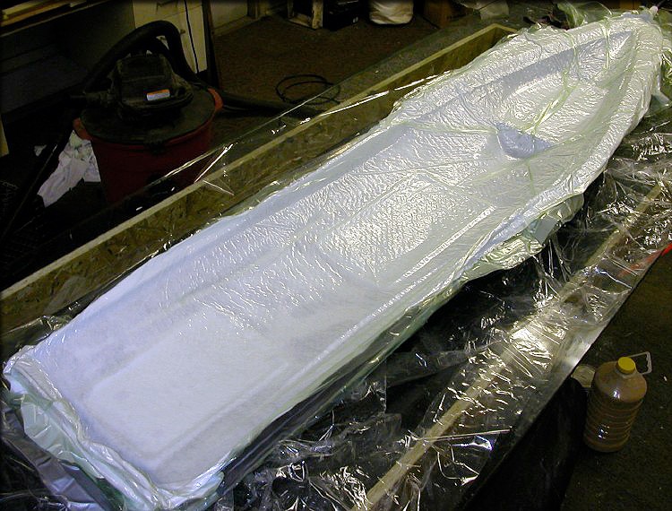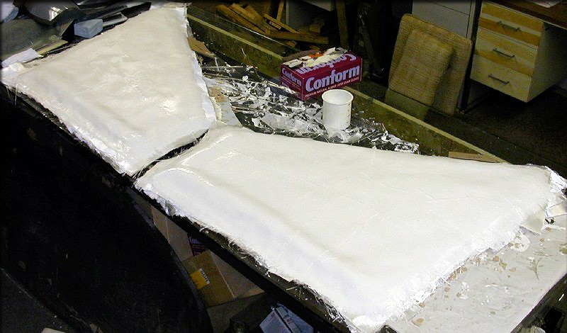 It's always been my intention to make the first fuselage a test piece, to be sliced up, for verifying former shapes. I'm making this one heavy, so it won't buckle when sliced. It's several layers of 6 oz. cloth. (fuselage bottom shown here)