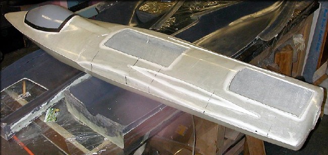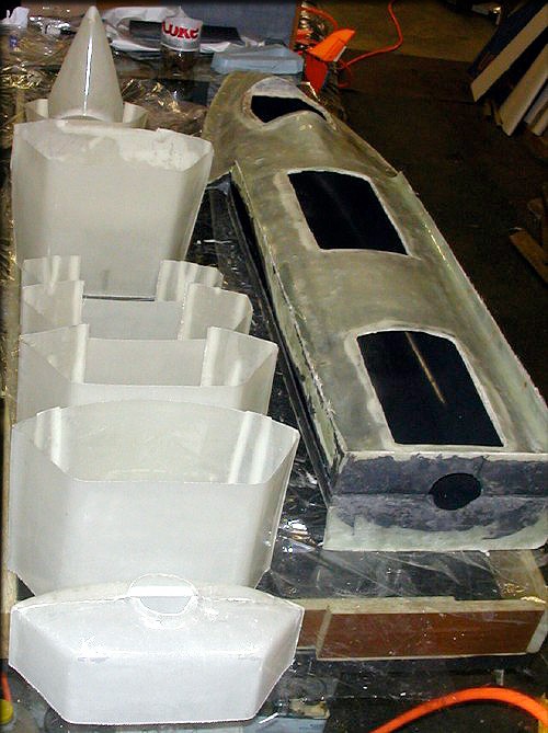 Here's the heavy duty "sliceable" fuselage, out of the molds, with one of the already-molded canopies in place.